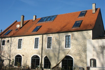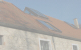 Dachfirst. Das Dachfenster wurde in ein unter Denkmalschutz stehenden Gebäude eingebaut.