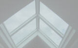 Kunden produziert haben. Es wurde zur Aufwertung eines Penthouses in den Dachfirst eingelassen. Das Holz-Alu-Element besteht aus zwei Flügeln mit jeweils einer Sprossenteilung. Es ist einzigartig auf dem europäischen Markt und