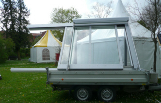 Der Schiebeflügel wird über seitliche Laufschienenüber die Dachhaut geschobenÖffnungsfläche: 100% Im Bild mit elektrischer Ausenmarkise